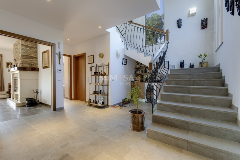 Features Comprising spacious interiors, the villa is distributed over two floors On the ground floor, a bright living room with fireplace opens directly onto the pool and outdoor dining area Fully equipped kitchen and a practical summer kitchen with barbecue Two bedrooms on this level, one en suite, plus a double garage with excellent storage space Upstairs, two additional en suite bedrooms open onto a spacious terrace overlooking the garden The heated 10x5 m pool features a jacuzzi area, automatic cover, and solar systemSurroundings Situated in one of the most exclusive areas of Lagos, within walking distance of restaurants, cafés, and Porto de Mós Beach Just a few minutes from the historic centre and Boavista Golf CourseHighlights Solid construction and high-quality finishes Central heating and underfloor heating, solar panels, double glazing Fibre-optic internet and an automatically irrigated garden A solid investment, ideal as a permanent home or holiday propertyA visit is highly recommended to appreciate its true quality firsthand.