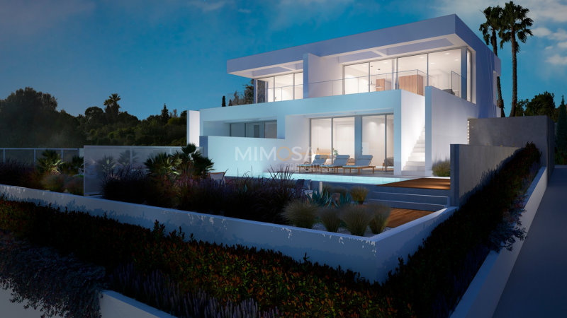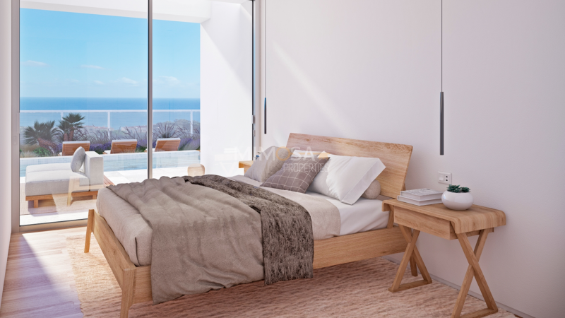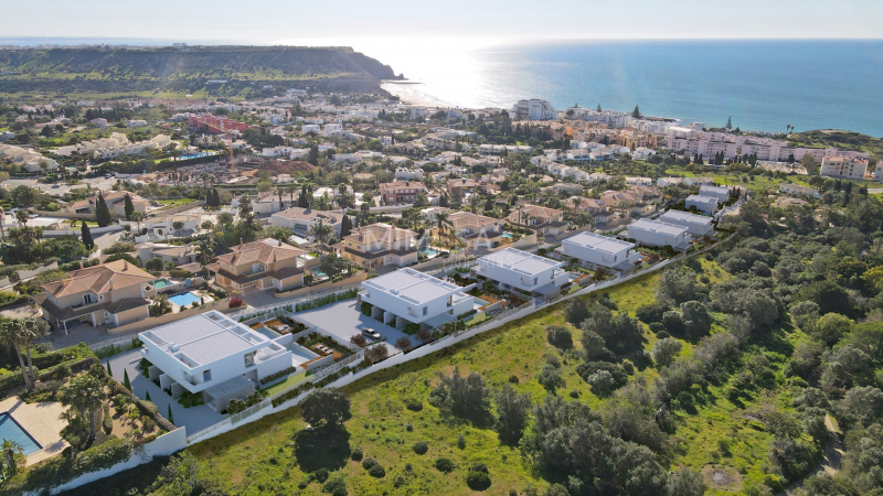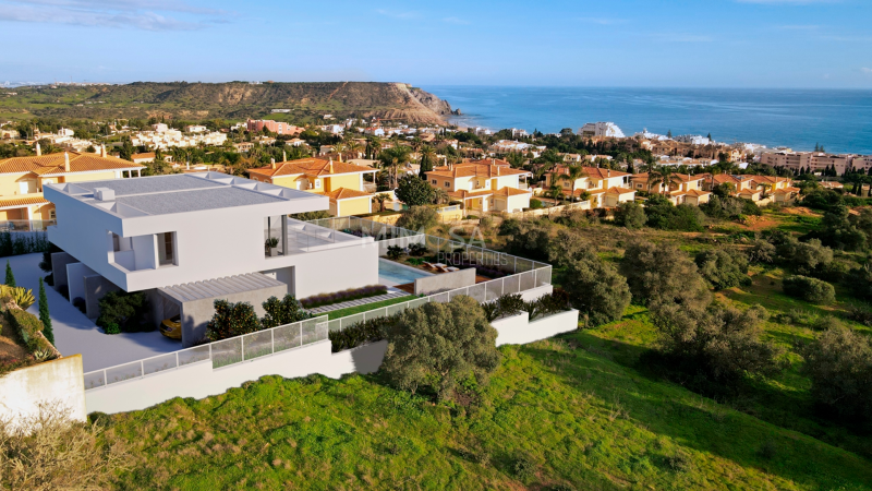 Luxury Contemporary T3 Villa, with panoramic ocean views, private pool and landscaped garden, located in an elevated area of Praia da Luz, Lagos, Algarve. Currently under construction, this high-standard development consists of only 12 semi-detached villas and 1 detached villa.