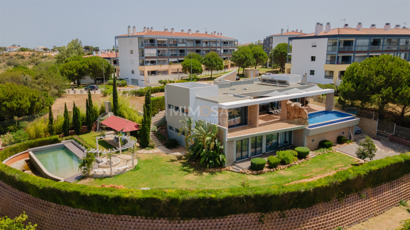 Features Gross area: 626 m² | Plot: 2,797 m² Built in 2014, in excellent condition Solar panels, individual heating, air conditioning, central vacuum system, electric underfloor heating on the ground floorGround floor Spacious and elegant entrance hall Bright living and dining room with direct access to the terrace and swimming pool Fully equipped kitchen Office, pantry, and guest bathroom 2 en-suite bedrooms, including the master suite with hydromassage bathtub, shower, double washbasins, and walk-in closetLower floor 2 en-suite bedrooms with built-in wardrobes Gym, jacuzzi, sauna, and Turkish bath Independent 2-bedroom apartment with living room and kitchenette Garage for 4 vehicles, laundry room, workshop, and wine cellarExterior Heated swimming pool with waterfall Natural swimming pool with biological filtration Outdoor dining area with barbecue and fireplace Garden with fruit trees (vines, orange trees, lemon trees, and olive trees)Surroundings Located in a quiet residential area, just a few minutes from Lagos Marina, Meia Praia beach, supermarkets, and services, combining privacy and convenienceHighlights Potential for permanent residence or holiday rental investment Technology and comfort combined with energy efficiencyA unique opportunity to acquire a prestigious property where luxury, comfort, and functionality come together.