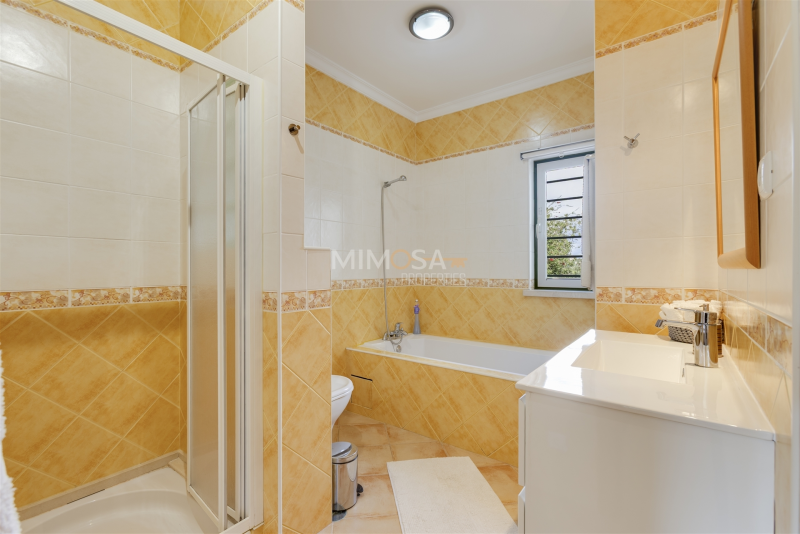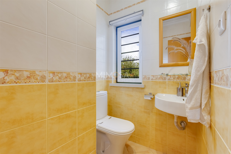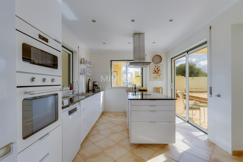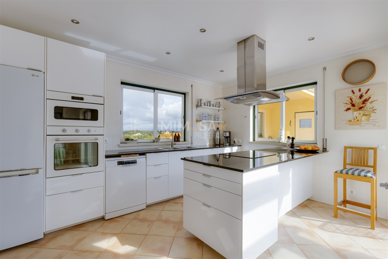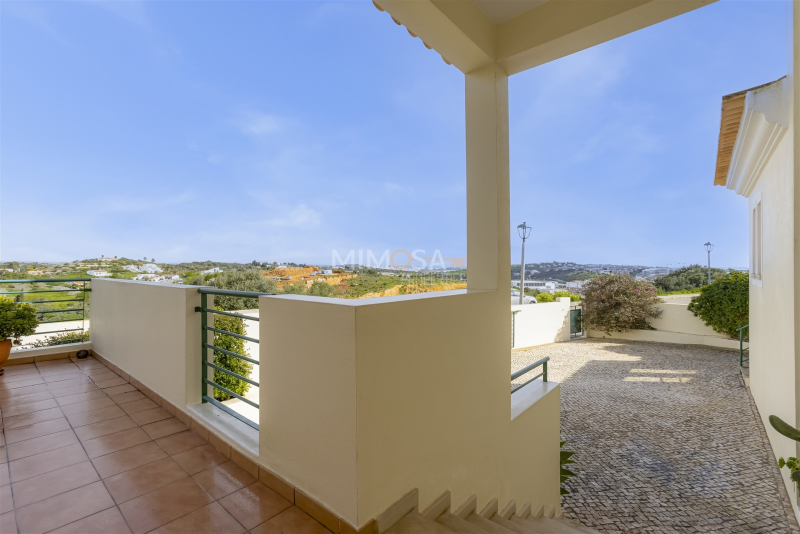 Entrance, major hall way, spacious remodelled kitchen, dining room, living room, both with access to the garden and pool area. Further on the groundfloor a bedroom en suite and a guest toilet. On the first floor two bedrooms, both withen suite bathrooms. Large terrace overlooking Lagos and the beautiful coastline of the Algarve. In the souterrain there isa laundry room, a garage/annex and a storage