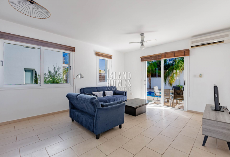 3 bedroom, 2 bathroom, 1 WC, detached villa with private pool on 320m2 plot and clean TITLE DEEDS on application located just 350m from the beach in popular area of Pernera - CRY120