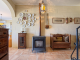 A wood-burning stove sits at the base of the staircase — the heart of the home — spreading warmth and comfort throughout the space.