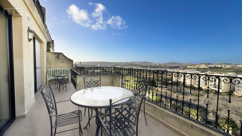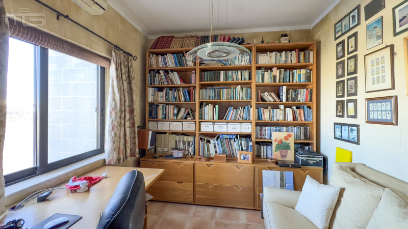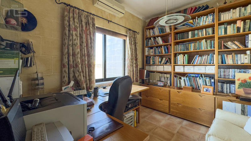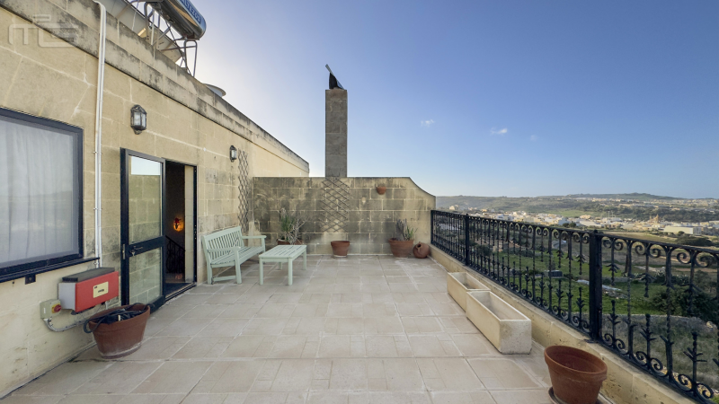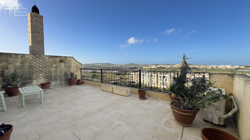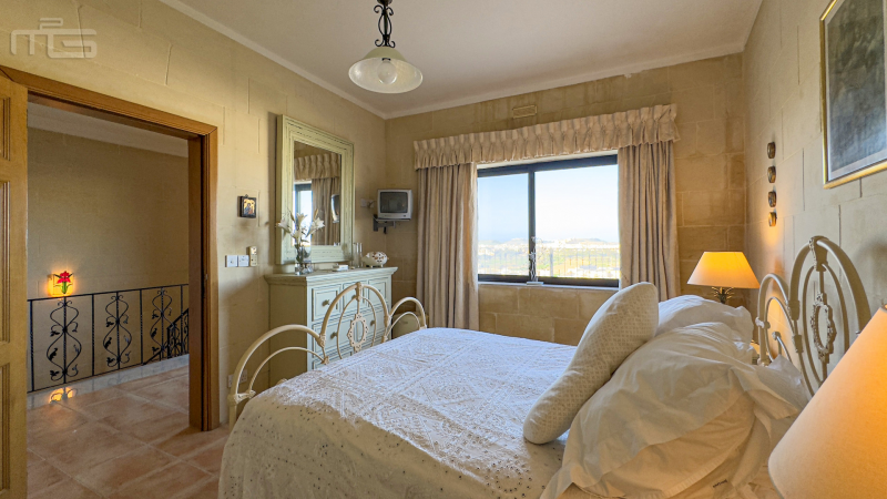A traditional cantilever staircase leads to the top floor, where you’ll find two more bedrooms — one currently used as a study — along with another stylish shower room. A door opens onto an expansive sun terrace, offering even wider views across the island, reaching almost as far as Mgarr Harbour.