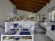 toilet, bidet, sink, and heated towel rail. On the first floor is the loft-like living area with high wooden ceilings and a fully equipped kitchen (washing machine,