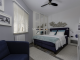 bedrooms on the ground floor, each with large built-in wardrobes, plenty of storage space, and a bathroom with a modern glass shower, sunken bathtub,