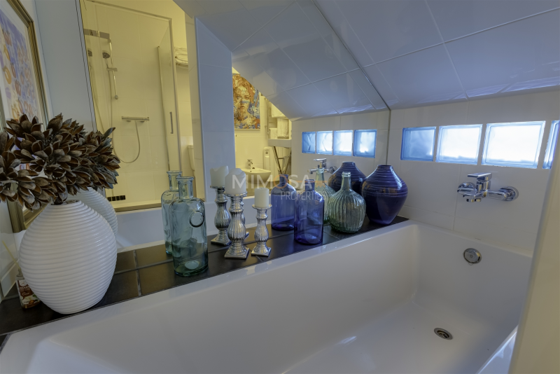 terrace into the living area, giving the entire upper floor an open-air feel. For cool winter evenings, there is not only a wood-burning stove but also the new owners