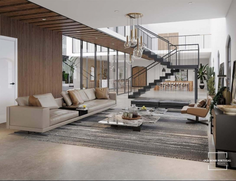 The LOFT is an open space with plenty of natural light, thanks to the huge windows that frame the entire property, namely in the living room and kitchen area with opening to the outdoor patio and the pool.