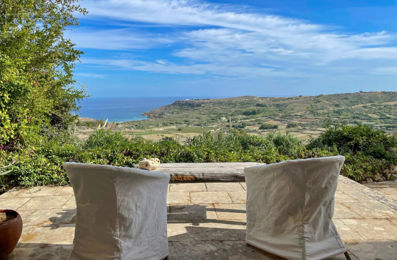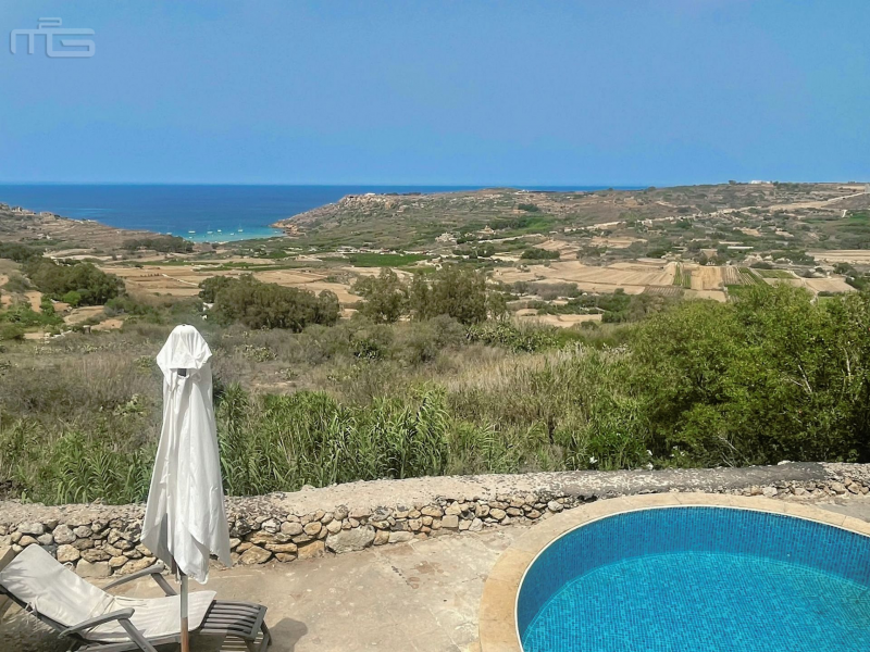 This exceptional fully detached villa, a rare find on the market, boasts an impressive 48 meters of frontage overlooking a picturesque valley. Set against the backdrop of the stunning Ramla bay and valley, the property offers wide, sweeping 180-degree views of the sea and valley, bathing the interiors in an abundance of natural light.