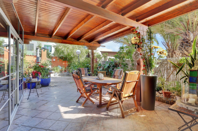 We are pleased to present this elegant semi-detached villa, located in one of the most exclusive and peaceful residential areas of Parque Holandés, perfectly positioned between Puerto del Rosario and Corralejo. Set on a generous 480 m² plot, the property offers 150 m² of living space, designed to provide comfort, privacy, and a refined Mediterranean lifestyle. The villa is sold fully furnished and in excellent condition, ready for immediate occupancy or rental.