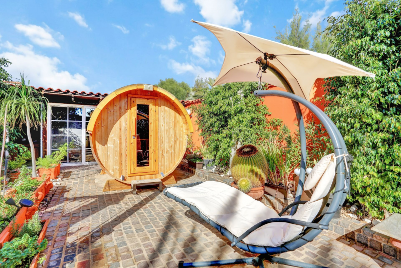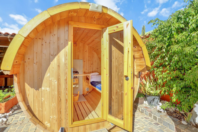 A covered terrace with a built-in barbecue creates the perfect setting for unforgettable evenings with friends and family.