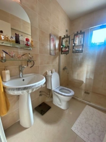 A modern bathroom with beautiful tiles that comes with Shower, w/c, and wash basin.